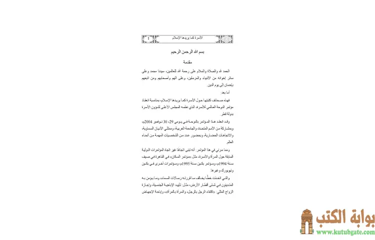 تحميل كتاب الأسرة كما يريدها الإسلام PDF – يوسف القرضاوي – يتناول كتاب الأسرة كما يريدها الإسلام للكاتب يوسف القرضاوي دور الإسلام في تشكيل الأسرة المسلمة وكيفية إدارتها بشكل يتماشى مع التعاليم الإسلامية. يبرز الكتاب أهمية بناء البيت المسلم من خلال اختيار الزوجة الصالحة وما يترتب على ذلك من مسؤوليات. يركز القرضاوي على ضرورة متابعة الأفراد في الأسرة لمسؤولياتهم والعمل على تحقيق إدارة أسرية سليمة تضمن استقرارها واستمرارها.