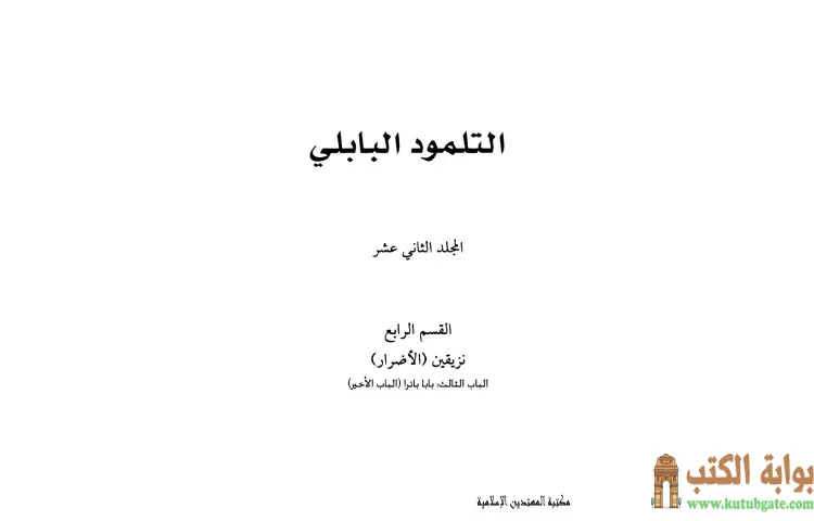 تحميل كتاب التلمود البابلي 12 PDF – الرابي آشي – التلمود البابلي المعروف أيضا باسم چمراه هو مؤلف جماعي يضم مجموعة من الأفكار التشريعية والأسطورية التي تعكس تفكير الأمورائيم وهم حكماء إسرائيل في الفترة التي تلت انتهاء المشنا يهدف هذا العمل إلى تلخيص وتوثيق الأفكار والتعاليم التي تتعلق بالشؤون الدينية والقانونية التي كانت سائدة في تلك الحقبة التاريخية