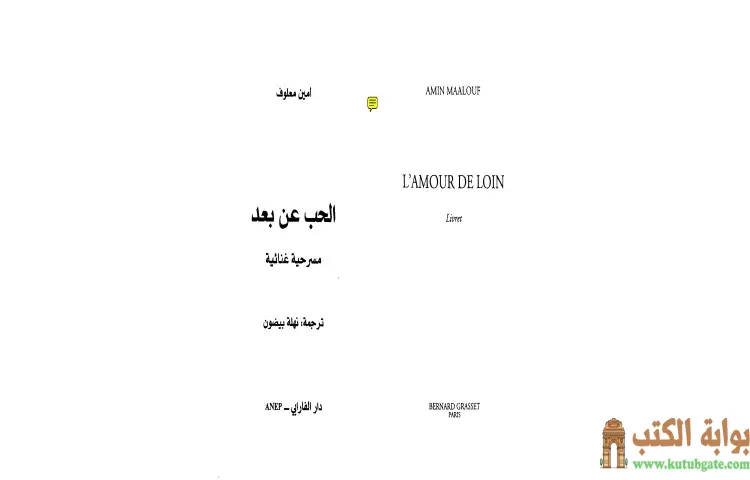 تحميل كتاب الحب عن بعد PDF – أمين معلوف – الحب عن بعد هو عمل أوبرا كتب نصه أمين معلوف ولحنه كايجا سارياهو وأخرجه بيتر سيلار لمهرجان سالزبورغ في أغسطس عام 2000 تحت إدارة كنت ناغانو الموسيقية. تتألف الأوبرا من خمسة فصول وتدور أحداثها في القرن الثاني عشر، حيث تمتد بين مقاطعة أكيتين الفرنسية ومدينة طرابلس وعرض البحر. تروي القصة معاناة جوفري روديل، أمير بلاد بلاي، الذي يشعر بالملل من حياة الترف التي يعيشها، ويتوق إلى حب بعيد يعتقد أنه لن يصادفه أبدا.
