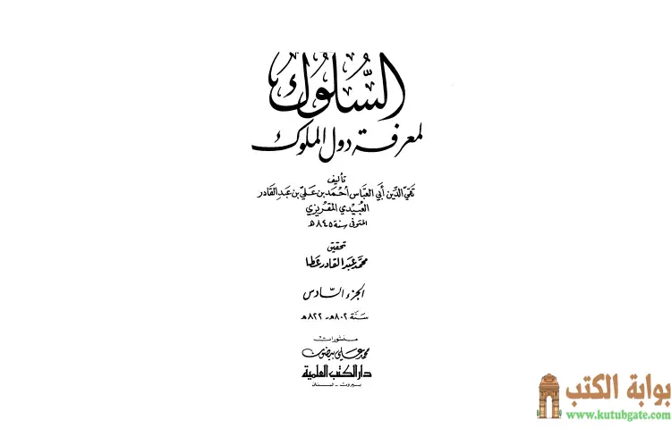 تحميل كتاب السلوك لمعرفة دول الملوك 6 PDF – تقي الدين المقريزي – كتاب السلوك لمعرفة دول الملوك لتقي الدين المقريزي هو عمل تاريخي يتناول فترة حكم الدولة الأيوبية والدولة المملوكية في مصر، وهي فترة تشهد على أحداث وشخصيات بارزة في التاريخ الإسلامي. يعد هذا الكتاب من أبرز مؤلفات المقريزي، حيث يجسد أهمية التاريخ الوسيط لمصر ويجمع فيه معلومات غزيرة عن العصور الأيوبية والمملوكية، بدءًا من سنة 567 هـ حتى وفاته في سنة 845 هـ.