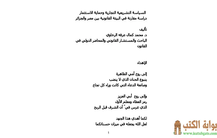 تحميل كتاب السياسة التشريعية التجارية وحماية الاستثمار PDF – محمد كمال الرخاوي – يتناول كتاب "السياسة التشريعية التجارية وحماية الاستثمار" للدكتور محمد كمال الرخاوي دراسة مقارنة بين البيئة القانونية في مصر والجزائر. يقدم المؤلف من خلال هذا العمل تحليلاً معمقاً للسياسات التشريعية المتعلقة بالتجارة وحماية الاستثمارات، مما يعكس التحديات والفرص التي تواجهها الدولتان في هذا السياق. يستند الكتاب إلى مجموعة من المعطيات القانونية والاقتصادية التي تساعد في فهم كيفية تفاعل الأنظمة القانونية مع متطلبات السوق.