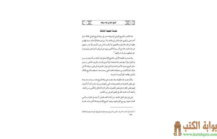 تحميل كتاب الشيخ الغزالي كما عرفته رحلة نصف قرن PDF – يوسف القرضاوي – يقدم كتاب "الشيخ الغزالي كما عرفته" للكاتب يوسف القرضاوي رؤية شخصية حول الشيخ محمد الغزالي رحمه الله، حيث جاء الكتاب ليؤكد أهمية تكريم العلماء وعدم انتظاره حتى بعد رحيلهم. يتناول الكتاب مآثر الشيخ الغزالي ودوره في الدعوة الإسلامية، ويعكس تجربة شخصية قريبة من حياة الشيخ، إذ كتب القرضاوي تلك السطور في فترة حياة الغزالي، مما يعطي الكتاب طابعاً خاصاً وموثوقاً.