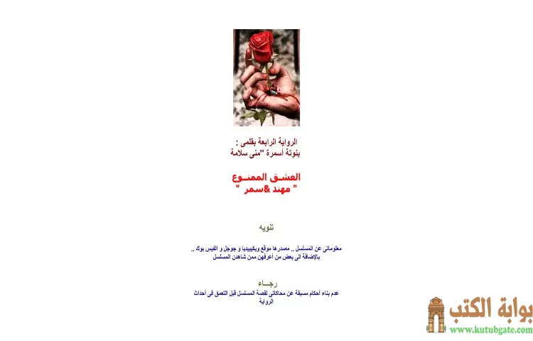 تحميل كتاب العشق الممنوع PDF – مني سلامة – رواية العشق الممنوع من تأليف منى سلامة تقدم نموذجاً مختلفاً تماماً عن المسلسل المعروف الذي يحمل نفس العنوان. استطاعت الكاتبة أن تعيد رسم صورة البطل الذي أحبته الفتيات في المسلسل رغم صفاته السيئة، حيث قدمته في الرواية كشخصية تستحق لقب البطل، وهو التغيير الذي كانت منى تسعى إليه من خلال محاكاتها لقصة المسلسل ولكن من منظور مختلف. تتسم أعمال منى سلامة بطابع ديني واضح، مما يضفي على الرواية عمقاً مميزاً يتناسب مع توجهها الأدبي.