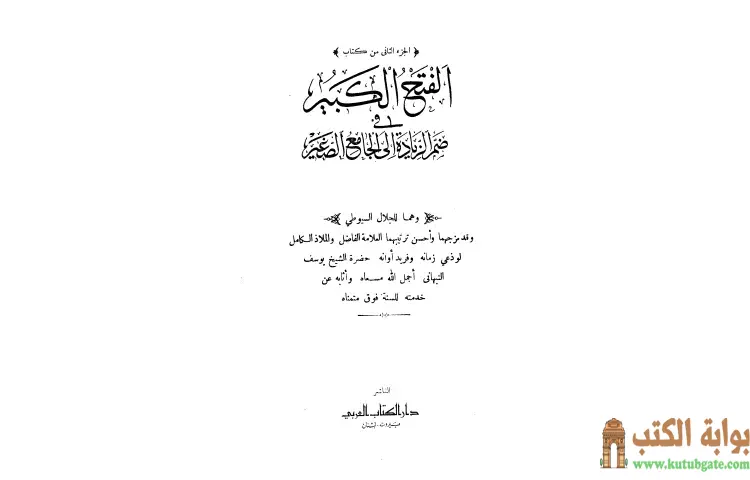 تحميل كتاب الفتح الكبير في ضم الزيادة إلى الجامع الصغير 2 PDF – يوسف بن إسماعيل النبهاني – الفتح الكبير في ضم الزيادة إلى الجامع الصغير هو عمل أدبي مميز من تأليف يوسف بن إسماعيل النبهاني يتناول فيه موضوعات تتعلق بالحديث الشريف وعلومه حيث يسعى المؤلف من خلاله إلى إضافة ما يعتبره زيادات مهمة على الكتاب المعروف الجامع الصغير والذي يتضمن مجموعة من الأحاديث النبوية الشريفة
