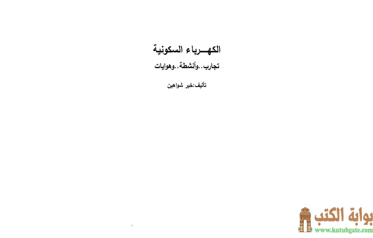 تحميل كتاب الكهرباء السكونية PDF – خير سليمان شواهين – الكهرباء السكونية هو كتاب كتبه خير سليمان شواهين، وهو موجه للطلاب والمعلمين من المرحلة الأساسية حتى الثانوية، بالإضافة إلى هواة العلوم. يتناول الكتاب مواضيع مرتبطة بالكهرباء السكونية بأسلوب ممتع يجمع بين المحتوى النظري والتجارب والأنشطة والألعاب التي تضفي طابعاً من المرح على عملية التعلم. يهدف هذا الكتاب إلى جعل دراسة الكهرباء السكونية تجربة شيقة ومغامرة فريدة، حيث يمكن للقراء الاستفادة من المعلومات المقدمة بطريقة تفاعلية ومسلية. يعد هذا الكتاب مرجعاً قيماً لكل من يرغب في فهم أساسيات الكهرباء السكونية وتطبيقاتها بشكل مبسط وجذاب.