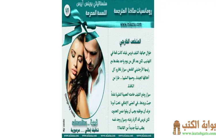 تحميل كتاب اللمسة المحرمة PDF – كارول مورتيمر – في رواية اللمسة المحرمة للكاتبة كارول مورتيمر، تبدأ القصة مع الشيف غريس بليك التي عُرفت بأخلاقها العالية وتهذيبها طوال حياتها. ولكن كل شيء يتغير بعد أن تبرم عقداً مع رئيسها الغامض، سيزار نافارو. في أقل من يوم واحد، تبدلت حياتها بشكل جذري، حيث تخلت عن كل ما هو تقليدي ومعتاد. سيزار، الذي يتمتع بشخصية قوية وجذابة، يفرض على غريس تحديات جديدة في بيئة العمل التي تجمعهما.