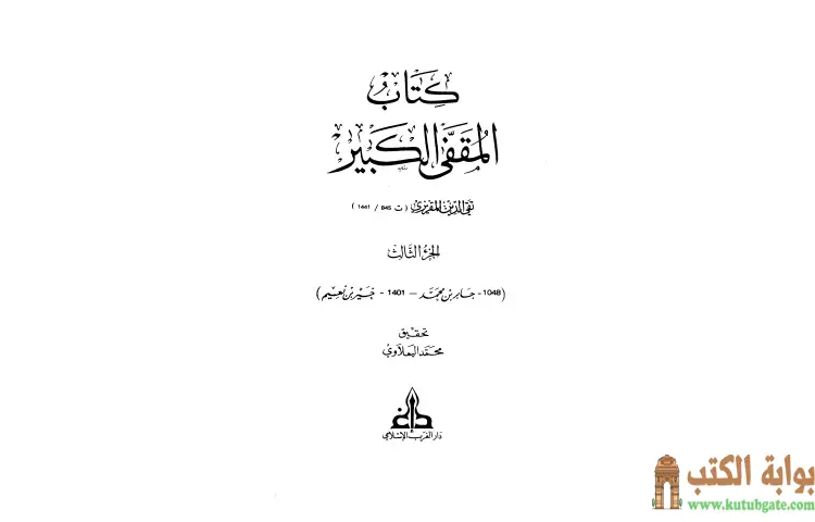 تحميل كتاب المقفى الكبير 3 PDF – تقي الدين المقريزي – المقفى الكبير هو كتاب ألفه تقي الدين المقريزي ويعرف أيضاً بالتاريخ الكبير المقفي حيث يهدف إلى توثيق تراجم أهل مصر والوافدين إليها ليكون بمثابة قاموس للرجال. يعتبر البعض أن المقريزي أراد أن يجعله موسوعة لأعلام مصر، ولكنه لا يقتصر فقط على من عاش في مصر، بل يشمل أيضاً الأشخاص الذين أقاموا فيها أو الذين مروا بها في طريقهم إلى بلدان أخرى بغرض سماع حديث أو نسخ كتاب.