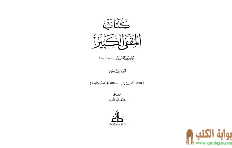 تحميل كتاب المقفى الكبير 5 PDF – تقي الدين المقريزي – كتاب المقفى الكبير أو التاريخ الكبير المقفي هو عمل تاريخي مهم ألفه تقي الدين المقريزي ويعنى بتراجم أهل مصر والوافدين إليها. يسعى المؤلف من خلال هذا الكتاب إلى تقديم قاموس شامل للرجال الذين ارتبطوا بمصر سواء عاشوا فيها أو كانوا في طريقهم إليها لأغراض مختلفة مثل سماع الحديث أو نسخ الكتب. يتجاوز الكتاب حدود التراجم المحلية ليشمل شخصيات بارزة من مصر حتى وإن كانت إقامتهم في الخارج، مما يعكس أهمية مصر كمركز ثقافي وتاريخي.