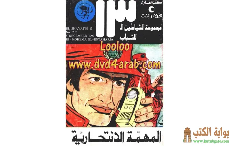 تحميل كتاب المهمة الإنتحارية PDF – محمود سالم – المهمة الانتحارية هي رواية من تأليف محمود سالم وتنتمي إلى سلسلة الشياطين التي تضم 13 جزءا وتعتبر من الروايات البوليسية المثيرة. بدأت السلسلة صدورها في لبنان قبل أن تنتقل إلى مصر، حيث تتمحور أحداث الروايات حول مجموعة من الشباب تتراوح أعمارهم بين المراهقة والشباب، يمثل كل منهم بلدا عربيا مختلفا. يجتمع هؤلاء الفتيان والفتيات في مواجهة المؤامرات التي تستهدف الوطن العربي، مما يضفي على الرواية بعدا وطنيا يجذب القراء من مختلف الدول.