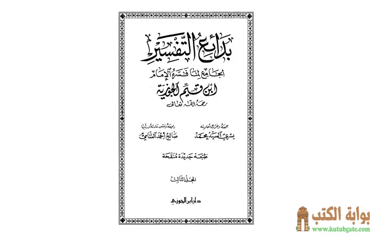 تحميل كتاب بدائع التفسير PDF – ابن قيم الجوزية – بدائع التفسير هو عمل علمي مميز للإمام ابن قيم الجوزية يهدف إلى تقديم تفسير شامل ومفصل للقرآن الكريم ويعتبر هذا الكتاب من أبرز مؤلفاته في مجال التفسير حيث يجمع فيه بين الأدلة النقلية والعقلية ويستند إلى الفهم العميق للآيات وتفسيرها وفقاً لمقاصد الشريعة الإسلامية