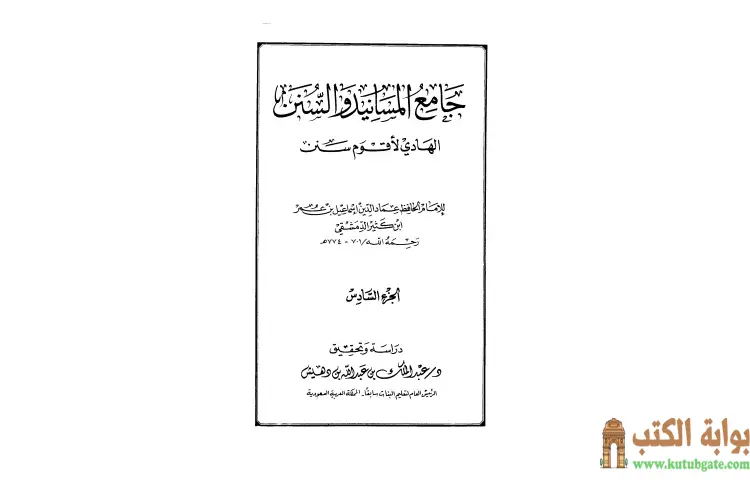 تحميل كتاب جامع المسانيد والسنن الهادي لأقوم سنن 6 PDF – ابن كثير – جامع المسانيد والسنن الهادي لأقوم سنن هو كتاب من تأليف الحافظ أبو الفداء إسماعيل بن عمر بن كثير القرشي البصري ثم الدمشقي الذي عاش بين عامي 700 هـ و774 هـ. يُروى أن ابن كثير فقد بصره أثناء تأليفه لهذا الكتاب، حيث كان يجلس ليلاً ويكتب تحت ضوء السراج حتى أُصيب بالعمى. وقد عبّر عن أمله في أن يُقيض الله له من يكمل هذا العمل، مشيراً إلى أن الكتاب كان سهلاً في تأليفه. يعتمد ابن كثير في ترتيبه على عمل محمد بن عبد الله بن المحب الصامت الذي نظم مسند أحمد على الصحابة، ويضيف إليه أحاديث من الكتب الستة ومعجم الطبراني الكبير ومسند البزار ومسند أبي يعلى الموصلي.