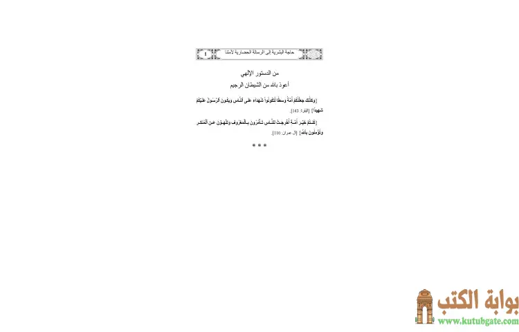 تحميل كتاب حاجة البشرية إلى الرسالة الحضارية لأمتنا PDF – يوسف القرضاوي – في كتيب حاجة البشرية إلى الرسالة الحضارية لأمتنا للكاتب يوسف القرضاوي، يتناول المؤلف الحاجة الماسة للبشرية، وبالأخص الغرب، إلى رسالة حضارية توازن بين المادة والروح وتربط بين الدنيا والآخرة. يبرز القرضاوي أن الغرب رغم تقدمه المادي الكبير وتحقيقه لثورات في مجالات متعددة مثل البيولوجيا والمعلومات والاتصالات، إلا أن الإنسان الغربي لا يزال يعاني من غياب السكينة والسعادة في حياته. ويؤكد أن رسالة الإسلام هي السبيل لتحقيق هذا التوازن، حيث تقدم الإيمان دون حرمان من العلم، وتربط الفرد بالآخرة بينما لا تمنعه من الاستمتاع بالحياة الدنيا.