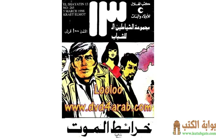 تحميل كتاب خرائط الموت PDF – محمود سالم – خرائط الموت هي رواية من تأليف الكاتب محمود سالم ضمن سلسلة الشياطين 13 التي تتميز بطابعها البوليسي المثير وتدور أحداثها حول مجموعة من الفتيان والفتيات في سن المراهقة يمثلون بلدانًا عربية مختلفة. بدأت السلسلة بالصدور في لبنان قبل أن تنتقل إلى مصر، حيث تستند أحداث الروايات إلى الحركة والتشويق من خلال المغامرات المثيرة التي يخوضها هؤلاء الأبطال.
