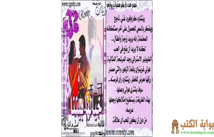 تحميل كتاب خيالها بيننا PDF – ميراندا لي – ريتشارد كراوفورد هو مليونير أسترالي يعيش حياة مليئة بالنجاح والغنى، لكنه يواجه رغبة قوية في الاستقرار من خلال تكوين عائلة. يسعى ريتشارد للحصول على آخر ممتلكاته المحتملة، ويريد الزواج وإنجاب الأطفال، لكنه يشعر بالخوف من الوقوع في الحب. في خضم بحثه عن المرشحة المثالية، يلتقي بهولي غرينواي، بائعة الزهور التي تمر بظروف مالية صعبة تهدد عملها.