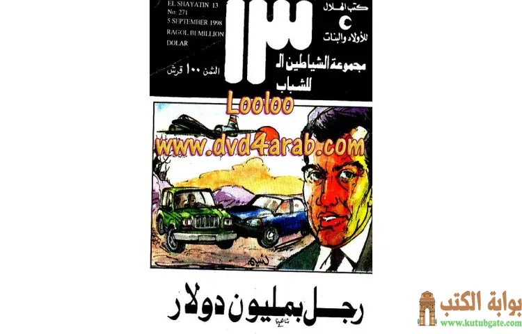 تحميل كتاب رجل بمليون دولار PDF – محمود سالم – رجل بمليون دولار هو عنوان الجزء الثالث عشر من سلسلة الشياطين التي ألفها الكاتب محمود سالم وتعتبر من الروايات البوليسية المثيرة التي جذبت انتباه القراء. بدأت السلسلة بالصدور في لبنان ثم انتقلت إلى مصر حيث حققت شهرة واسعة. تعتمد السلسلة على تقديم مغامرات مشوقة وشيقة لأبطالها الذين يتكونون من ثلاثة عشر فتى وفتاة يمثلون بلدانًا عربية مختلفة.