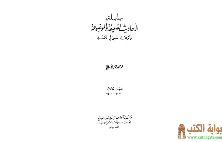 تحميل كتاب سلسلة الأحاديث الضعيفة والموضوعة 5 PDF – محمد ناصر الدين الألباني – سلسلة الأحاديث الضعيفة والموضوعة هي مؤلف مهم للشيخ محمد ناصر الدين الألباني الذي يعد واحدا من أبرز علماء الحديث في العصر الحديث يركز الكتاب على تصنيف الأحاديث الضعيفة والموضوعة ويقدم تحليلا دقيقا لمختلف الأحاديث ويبين أسباب ضعفها أو وضعها بناء على معايير علمية دقيقة