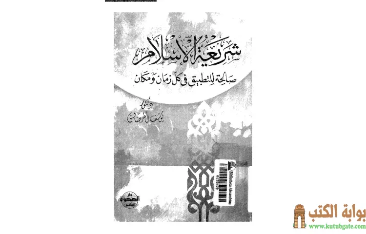 تحميل كتاب شريعة الإسلام صالحة للتطبيق في كل زمان ومكان PDF – يوسف القرضاوي – يستعرض يوسف القرضاوي في كتابه "شريعة الإسلام صالحة للتطبيق في كل زمان ومكان" قضية مهمة تتعلق بالشريعة الإسلامية ومدى صلاحيتها للتطبيق في مختلف الأزمنة والأمكنة. يطرح المؤلف تساؤلات حول ما إذا كانت الشريعة الإسلامية مخصوصة بزمان أو مكان معين، ويقدم أدلة تدعم فكرته بأن الإسلام والشريعة التي جاء بها هي شريعة عالمية.