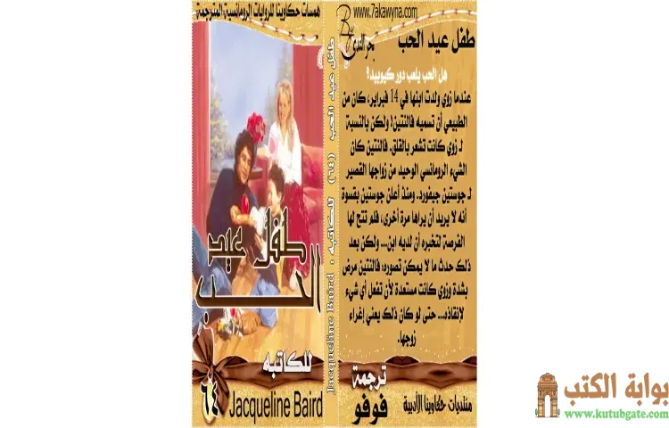 تحميل كتاب طفل عيد الحب PDF – جاكلين بيرد – في رواية طفل عيد الحب للكاتبة جاكلين بيرد، تتناول القصة حياة زوي التي أنجبت ابنها في يوم عيد الحب، مما جعلها تفكر في تسميته فالنتينا. إلا أن زوي كانت تشعر بالقلق بشأن هذه التسمية، حيث أن ذكرى زواجها القصير من د جوستين جيفورد كانت تثير مشاعر متباينة في نفسها، خاصة بعد أن أعلن جوستين بشكل قاس أنه لا يرغب في رؤيتها مجددًا. لم تُتح لزوي الفرصة لإخبار زوجها السابق بأنه أصبح أبًا، مما زاد من تعقيد مشاعرها.
