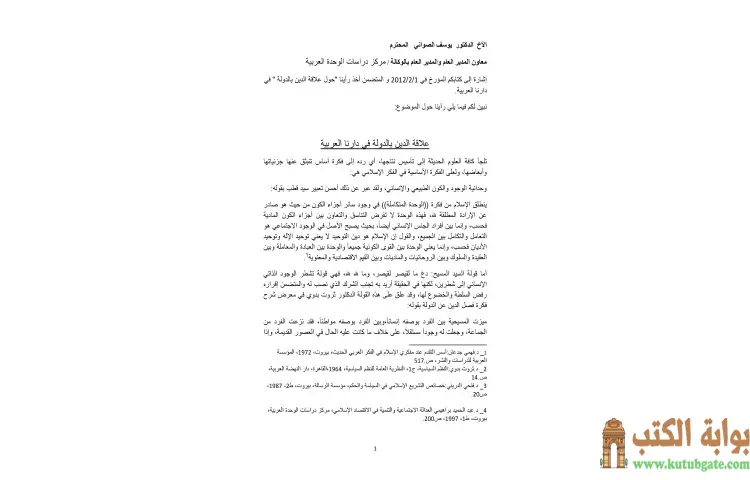 تحميل كتاب علاقة الدين بالدولة في دارنا العربية PDF – برهان زريق