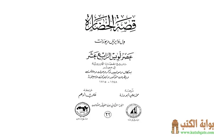 تحميل كتاب قصة الحضارة 32 عصر لويس الرابع عشر 2 PDF – ول ديورانت – قصة الحضارة 32 عصر لويس الرابع عشر هو عمل موسوعي تاريخي من تأليف المؤرخ والفيلسوف الأمريكي ويل ديورانت وزوجته أريل ديورانت. يتكون الكتاب من أحد عشر جزءًا، حيث يستعرض جميع الحضارات البشرية منذ بدايتها وحتى القرن التاسع عشر بأسلوب موضوعي ومنهج علمي. قضى المؤلفان عقودًا في إعداد هذا العمل، حيث قرأوا العديد من المؤلفات وطافوا حول العالم من شرقه إلى غربه أكثر من مرة، مما يبرز الجهد الكبير الذي بذلهما في جمع المعلومات.