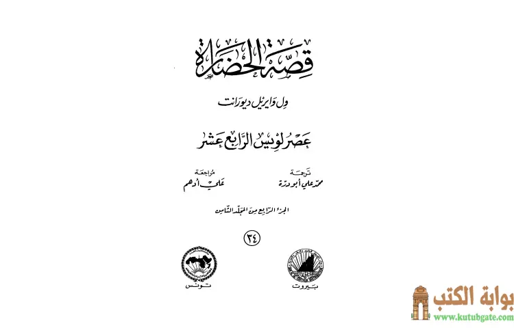 تحميل كتاب قصة الحضارة 34 عصر لويس الرابع عشر 4 PDF – ول ديورانت – قصة الحضارة 34 عصر لويس الرابع عشر هو كتاب موسوعي تاريخي من تأليف الفيلسوف والمؤرخ الأمريكي ويل ديورانت وزوجته أريل ديورانت. يتكون الكتاب من أحد عشر جزءا يتناول قصة جميع الحضارات البشرية منذ بدايتها وحتى القرن التاسع عشر. يتميز الكتاب بالموضوعية والأسلوب العلمي، إذ يعد موسوعة شاملة في فلسفة التاريخ. قام المؤلفان بجمع المعلومات والبيانات على مدار عشرات السنين، حيث قرأوا العديد من المؤلفات وطافوا بمختلف أنحاء العالم عدة مرات.