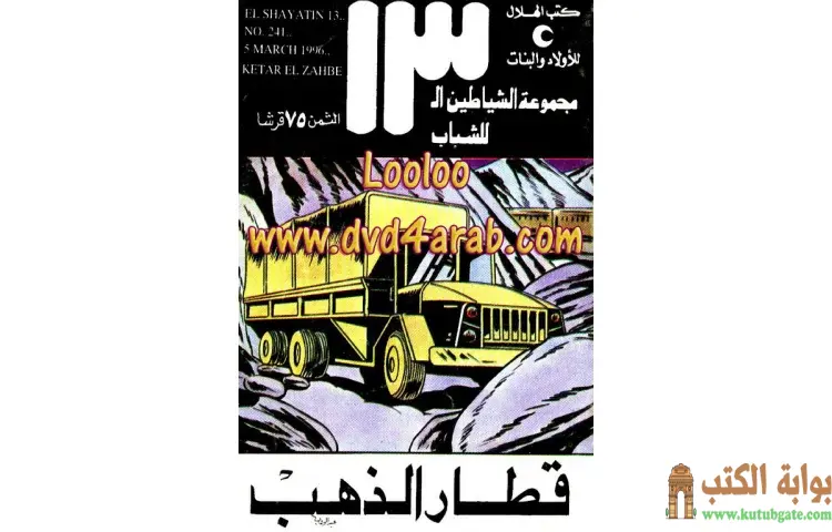 تحميل كتاب قطار الذهب PDF – محمود سالم – قطار الذهب هو عنوان رواية ضمن سلسلة الشياطين التي كتبها المؤلف محمود سالم وهي جزء من سلسلة روايات بوليسية مشوقة بدأت بالصدور في لبنان قبل أن تنتقل إلى مصر تتمحور أحداث الروايات حول مجموعة من 13 فتى وفتاة يمثلون بلدانًا عربية مختلفة يجسدون روح الشباب العربي ويتحدون معًا لمواجهة المؤامرات التي تستهدف الوطن العربي وتتناول الرواية مغامرات مثيرة تعتمد على الحركة والتشويق حيث يتلقى الأبطال تدريبات في منطقة الكهف السري الذي لا يعرفه أحد ويتعلمون فنون القتال واستخدام المسدسات والخناجر وفنون الكاراتيه مما يجعلهم جاهزين لمواجهة التحديات التي تصادفهم