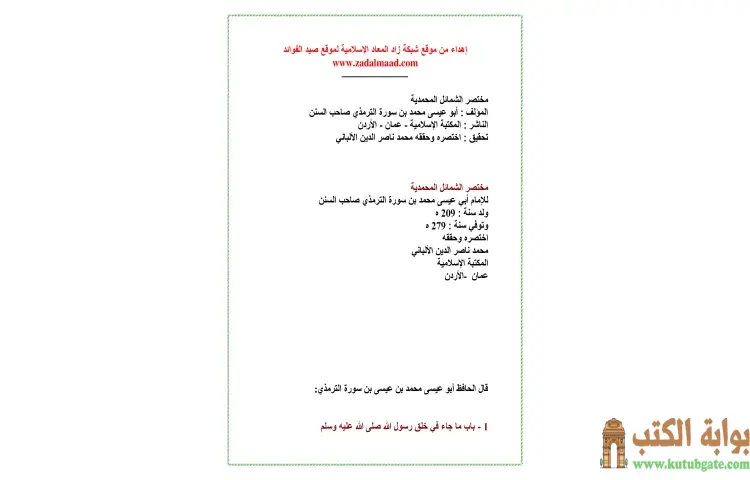 تحميل كتاب مختصر الشمائل المحمدية PDF – محمد ناصر الدين الألباني
