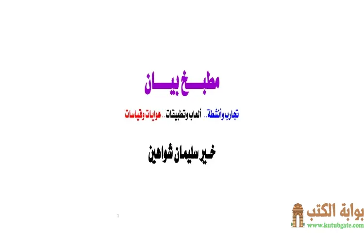 تحميل كتاب مطبخ بيان PDF – خير سليمان شواهين – أنا بيان أقدم لكم هذا الكتاب الذي يضم مجموعة من التجارب العلمية الممتعة والمفيدة في مطبخي. يتناول الكتاب مواضيع متنوعة تتعلق بالعلوم ويشجع على إجراء التجارب بشكل سهل وممتع. يهدف الكتاب إلى تحفيز الفضول العلمي لدى القراء من خلال تقديم معلومات قيمة وأفكار مبتكرة يمكن تنفيذها في المنزل. أرحب بكم في رحلة استكشاف العلوم مع كل تجربة جديدة، حيث يمكنكم التعلم والاستمتاع في آن واحد. في هذا الكتاب، ستجدون الكثير من الأفكار التي ستساعدكم على فهم العالم من حولكم بطريقة مسلية وتعليمية.