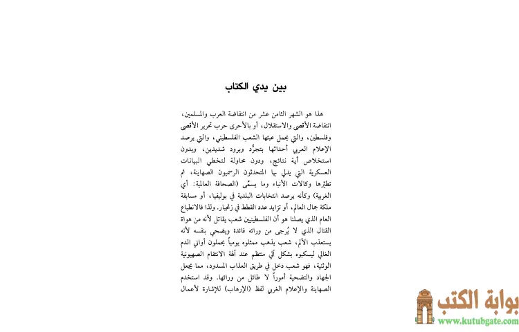 في مجمل الكتاب، يسعى المسيري إلى تقديم رؤية شاملة حول مسيرة النضال الفلسطيني، مع التركيز على أهمية الوحدة والدعم العربي والإسلامي في تحقيق الأهداف الفلسطينية. يؤكد أن كفاح الشعب الفلسطيني هو جزء لا يتجزأ من نضال الأمة العربية والإسلامية، ويجب أن يكون هناك تضافر للجهود من جميع الأطراف لتحقيق العدالة والمساواة.